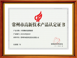 高新技術(shù)產(chǎn)品認(rèn)定證書(不銹鋼硅烷燃燒塔)
