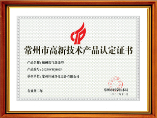 高新技術(shù)產(chǎn)品認(rèn)定證書(酸堿廢氣洗滌塔)