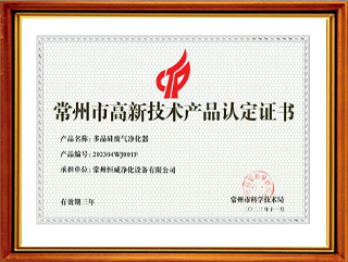 高新技術(shù)產(chǎn)品認(rèn)定證書(多晶硅廢氣凈化器)